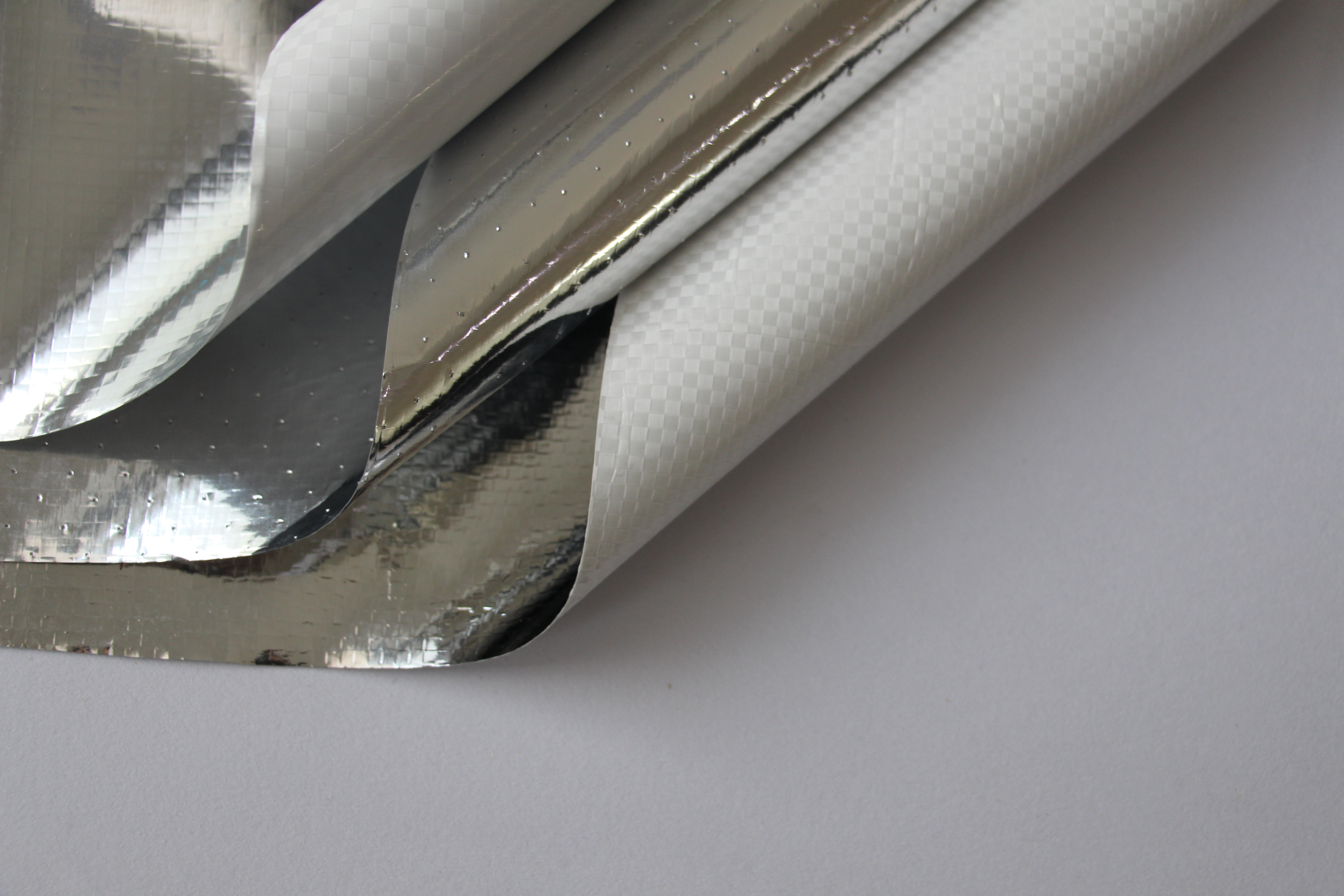 این نوع دو طرفه دارای ورق آلومینیومی است که در هر دو طرف پارچه بافتی PE لایه بندی شده است و بازتاب و دوام بیشتری را ارائه می دهد.این فراهم می کند عایق حرارتی دو طرفه و حفاظت مانع بخار، که آن را برای محیط های سخت مانند کارخانه ها، انبارها و سقف های فلزی مناسب می کند.
